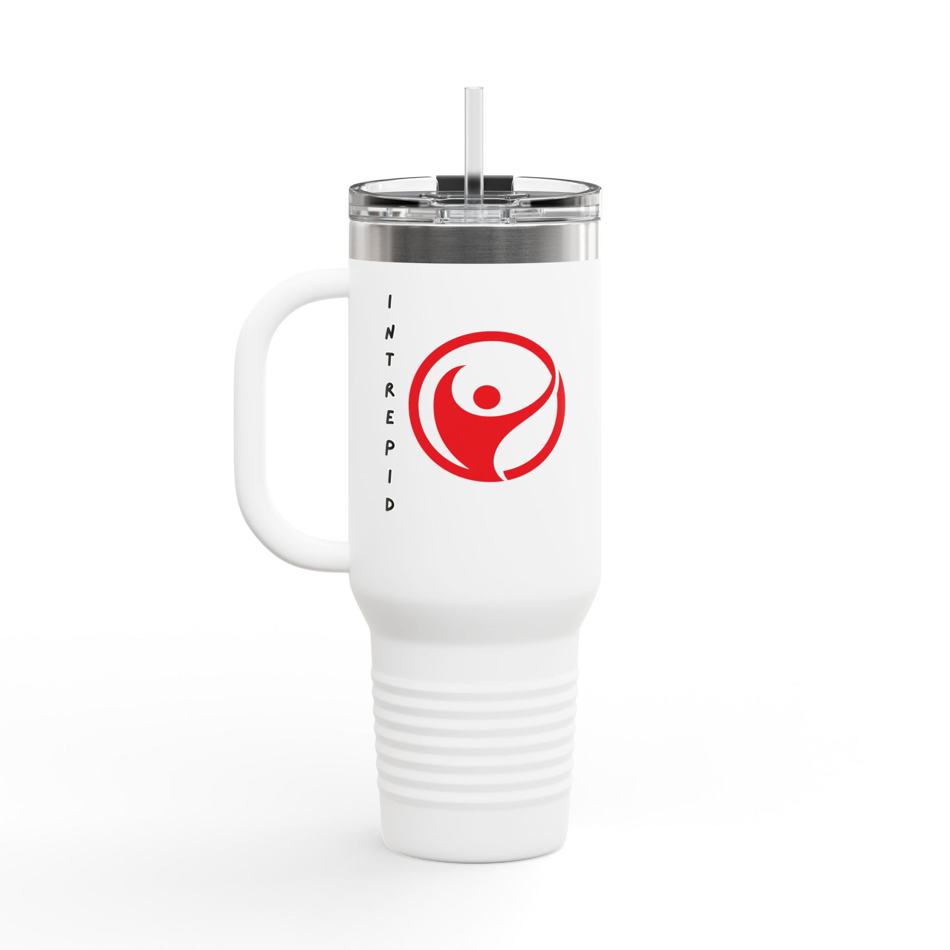 Intrepid 40oz Insulated Travel Mug — White Motivational Logo Tumbler (Keeps Drinks Hot & Cold)