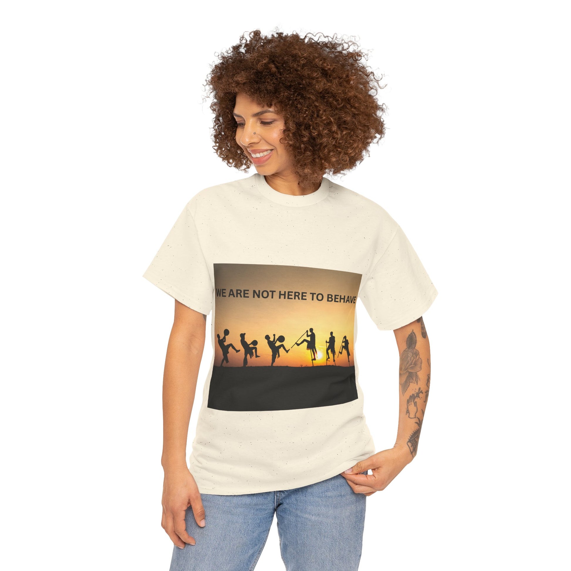 'We Are Not Here to Behave' Playful Unisex Heavy Cotton Tee - | Fun Gift for Artists, Dancers, and Adventurers | Casual Wear, [...]