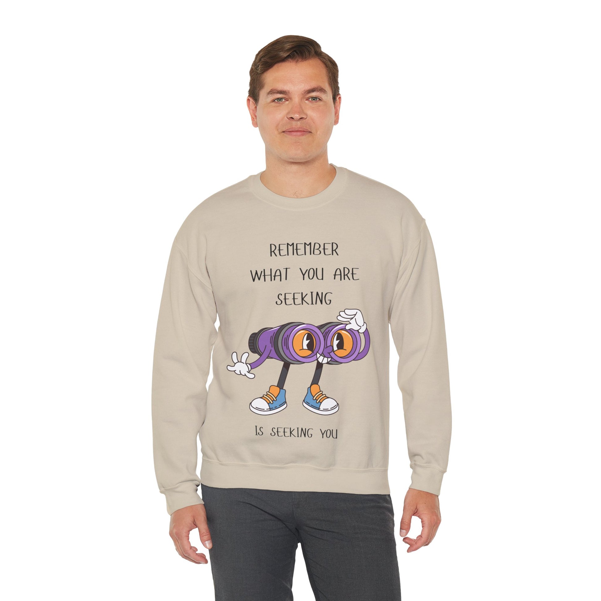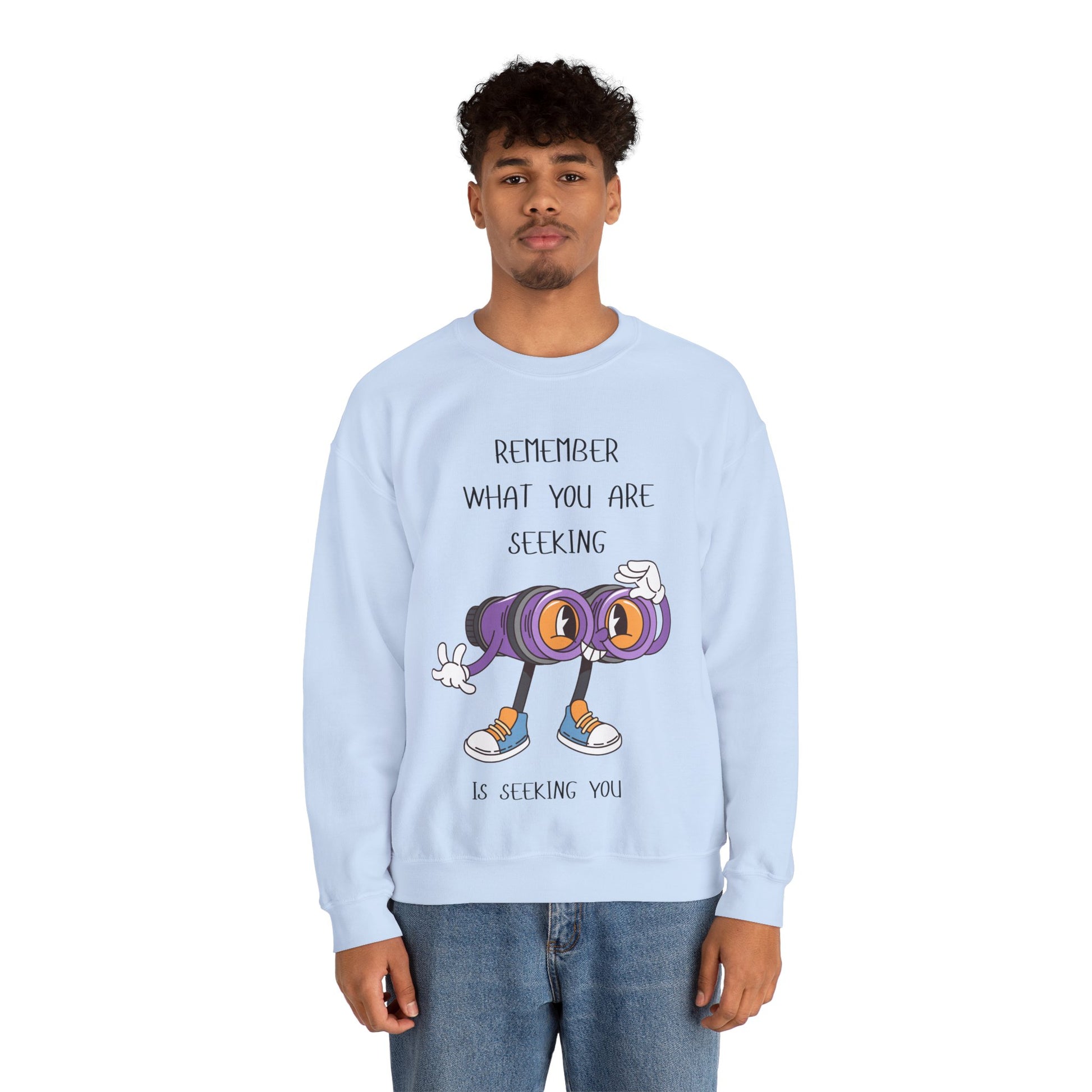 What You are Seeking is Seeking You Playful Inspirational Crewneck Sweatshirt, Cozy Gift for Adventurers, Motivational Fashion, Unisex Apparel, Perfect for Birthdays
